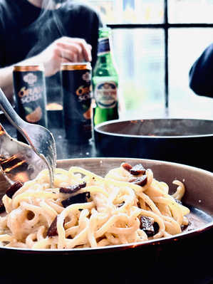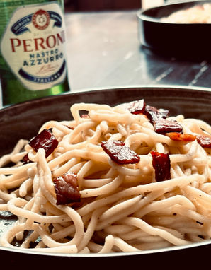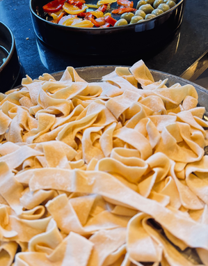 Dazu servieren wir feine Bar Snacks wie Affetato oder Burrata mit Parma-Schinken. Außerdem gibt es eine kleine, wechselnde Auswahl an Pasta-Gerichten, die wir in unserer eigenen kleinen Pastamanufaktur frisch für euch herstellen.